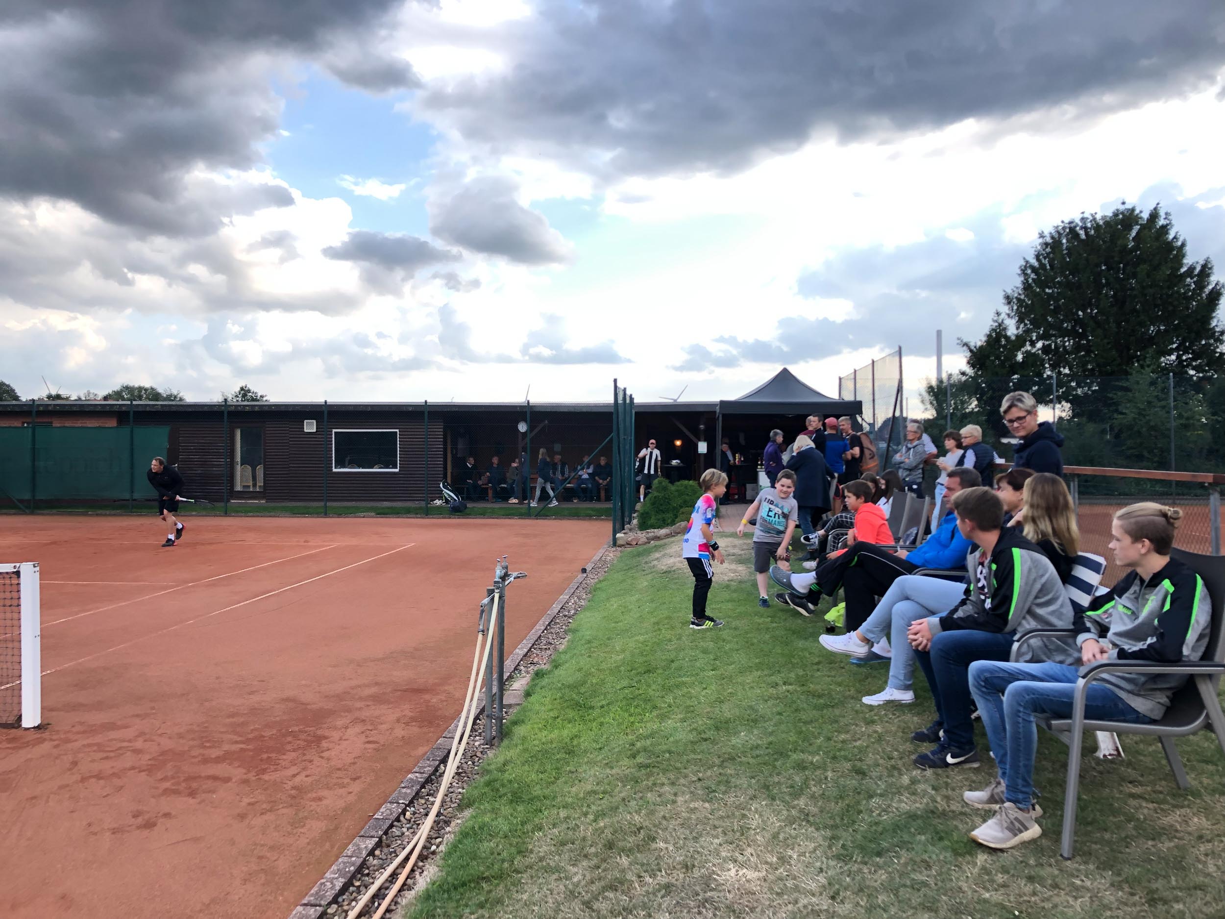 übergehen. So auch vergangenen Samstag, als es bereits um 11 Uhr mit den Finalspielen im Kleinfeld und bei den C-Juniorinnen/Junioren startete. Dass die Jugend den Erwachsenen in nichts nachsteht, davon konnten sich die zahlreichen Zuschauer während der Spiele der B-Junioren und B-Juniorinnen selbst überzeugen. Der Siegeswille war allen Spielern deutlich anzumerken. Ab 14 Uhr begannen die Finalspiele der Nebenrunde und Mixed-Doppel, woraufhin anschließend die Damen-30 und die Herren-Doppel auf den roten Sandplatz folgten. Wer nicht mitgespielt hat, der hat definitiv mitgefiebert und seinen Durst und Hunger beim reichlich gedeckten Tisch gestillt.